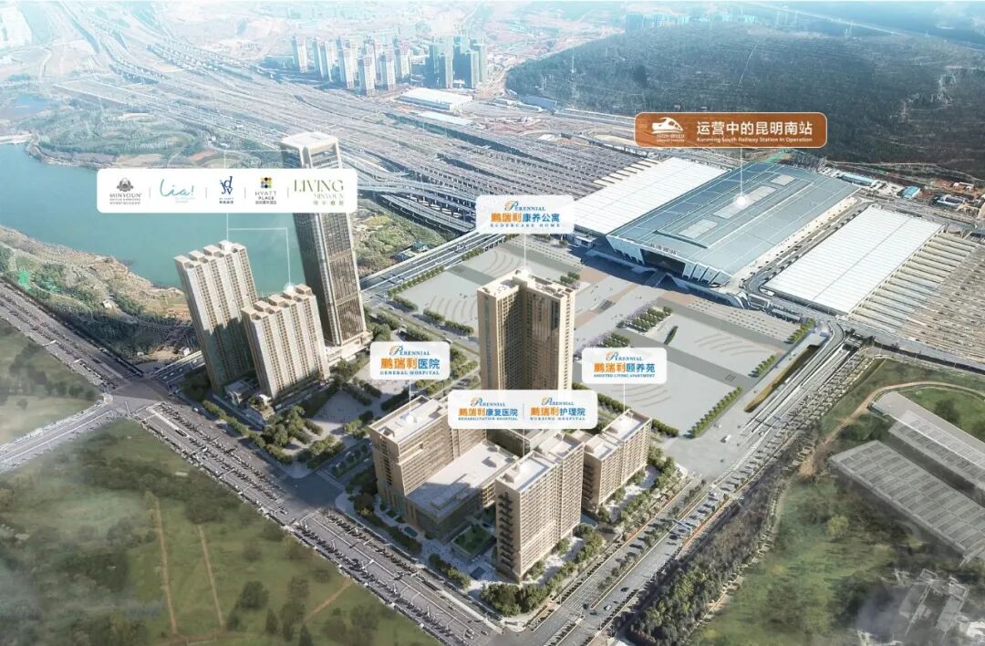 昆明南站鹏瑞利国际健康商旅城(以下简称“明鹏瑞利健康城”)是由新加坡鹏瑞利集团投资建设的TOD综合体,20236月由昆明市呈贡区卫生健康局与昆明鹏瑞利医院有限公司、昆明鹏瑞利康复医院有限公司签约。