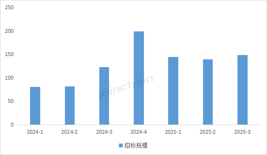 图 1 2024Q1-2025Q3国内县域医共体招标规模预算(单位:亿元)