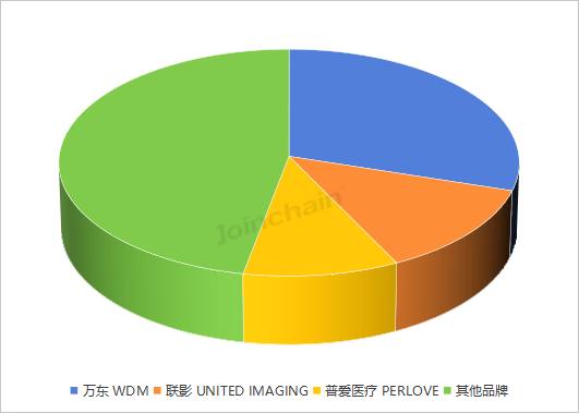 从DR的中标品牌来看,万东医疗、联影医疗、普爱医疗等品牌市场份额较为领先,其中万东医疗拥有一定的市场竞争优势,品牌市占率近30%。