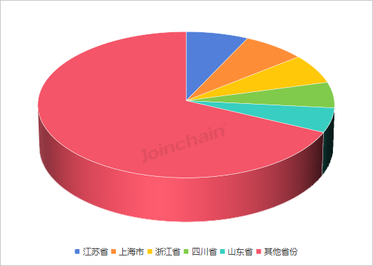 从各省份的项目预算金额来看,江苏、上海、浙江省的大规模设备更新采购规模较大,预算金额占比均为7%,其次是山东省和四川省。