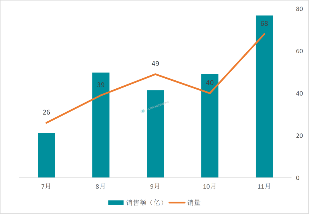 根据图表2与图表3可以发现,从近三年 7-11 月的同期表现看,销额趋势经历了 “先快速扩容、后小幅调整” 的转变:2023 到 2024 年,行业处于政策刺激下的高增长阶段,销额与销量均呈快速上升态势;而 2024 到 2025 年,销额虽有微幅回落,但整体规模仍显著高于 2023 年的水平。