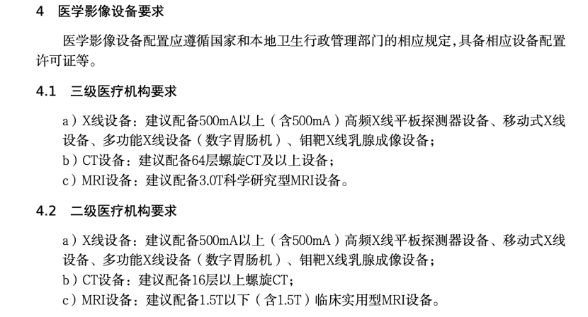 设备方面,根据《征求意见稿》,三级医疗机构要求二级医疗机构要求基层医疗机构要求分别如下: