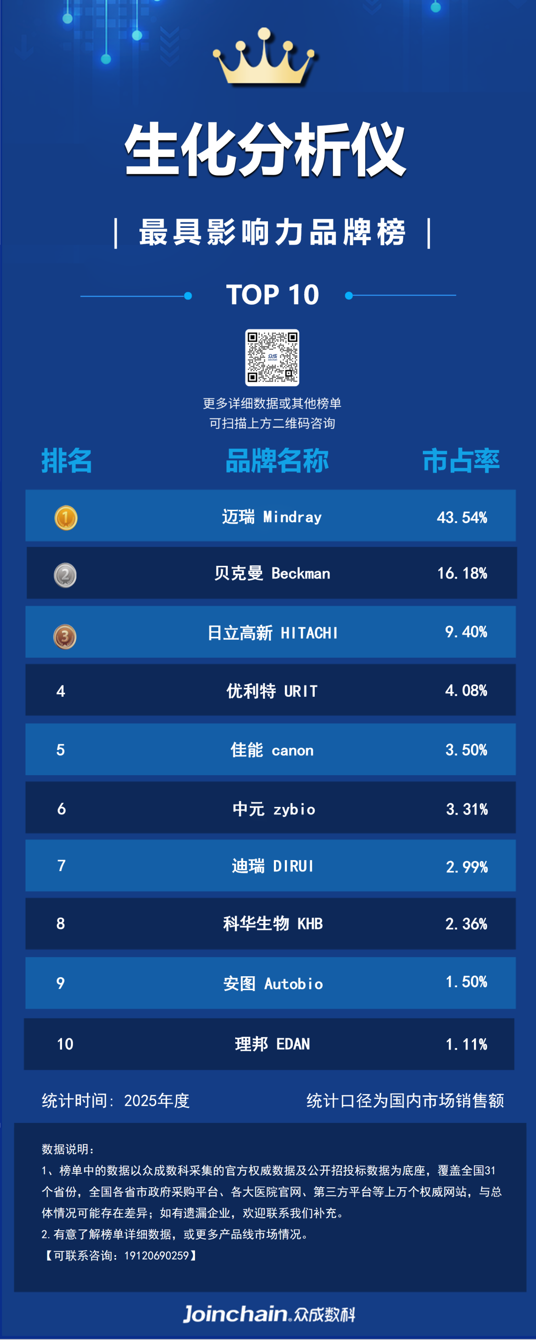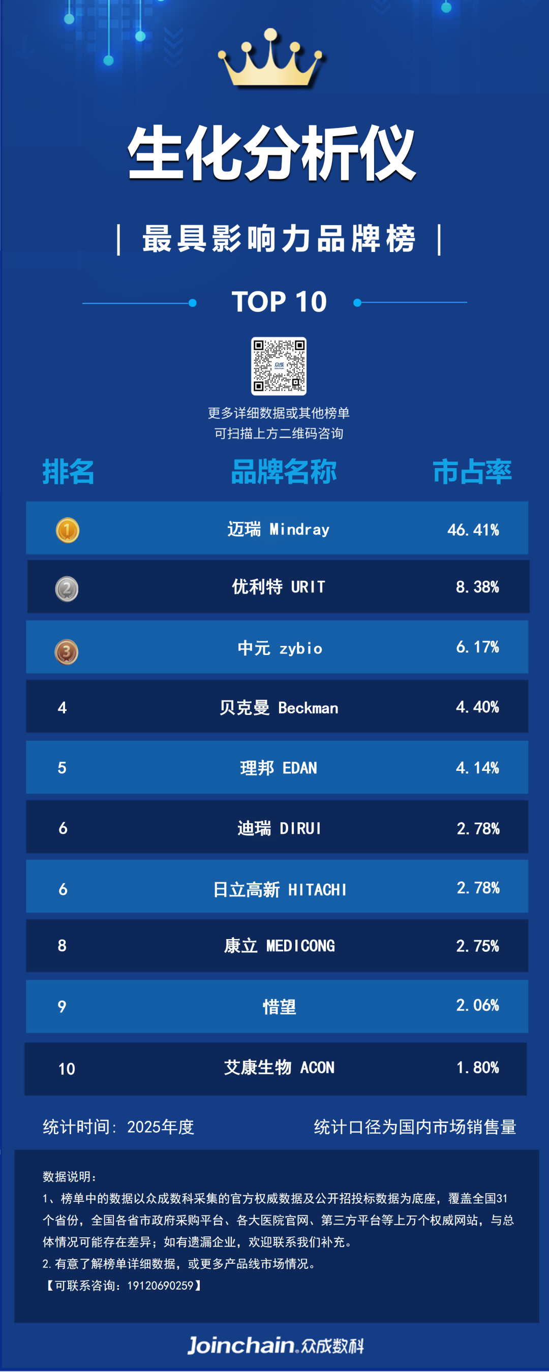 图 1 2025年度生化分析仪最具影响力品牌榜(按照销售金额)