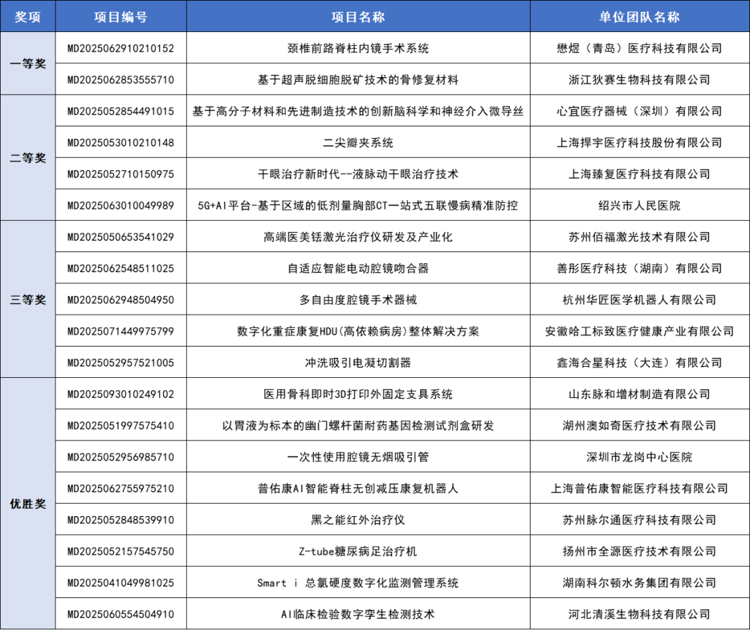 赛果出炉!第八届(2025)中国医疗器械创新创业大赛产业化专场赛