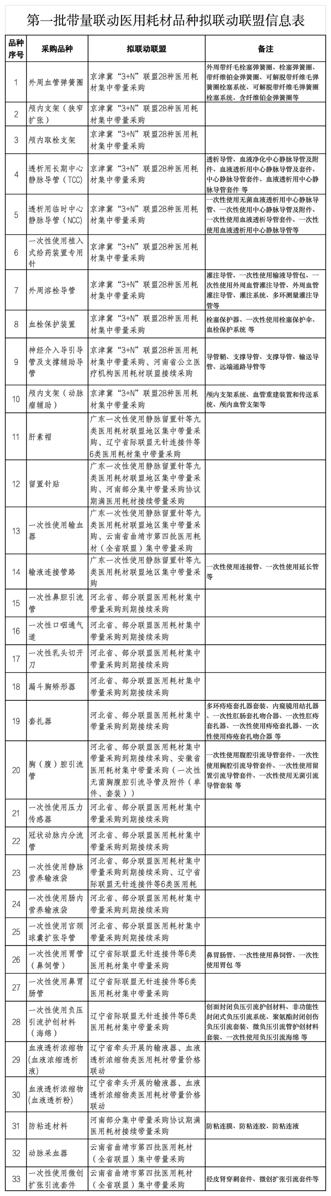 对比此前发布的征求意见稿,首批联动耗材由49类减少到33类。