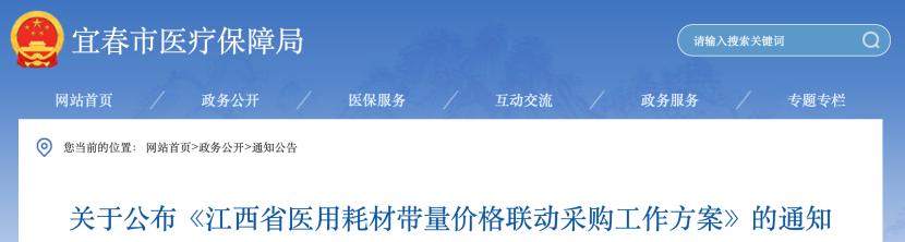 9月15日,江西宜春医保局发布《江西省医用耗材带量价格联动采购工作方案》(以下简称《工作方案》)及《关于江西省医用耗材带量价格联动采购第一批带量联动品种拟联动信息的公示》。