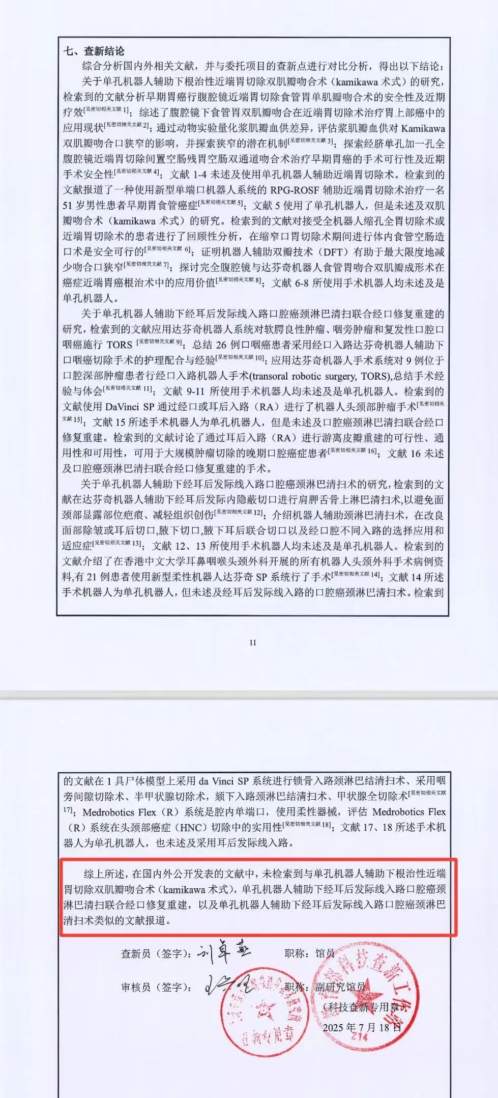 这两项创新术式,经权威科技查新证实,在国际上尚无同类报道。