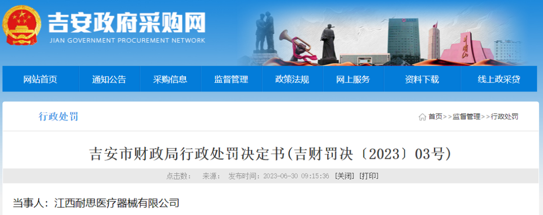 同一天,吉安政府采购网同步发布了对江西省贵如医疗器械有限公司、江西汉洽医疗器械有限公司的处罚决定书。
