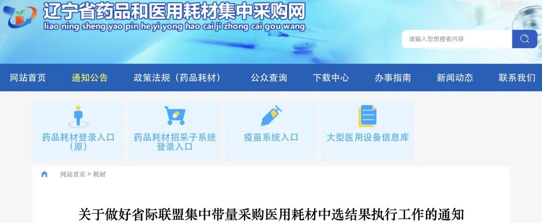 6月13日,辽宁省药品及医用耗材集中采购网发布《关于做好省际联盟集中带量采购医用耗材中选结果执行工作的通知》(简称《通知》)。
