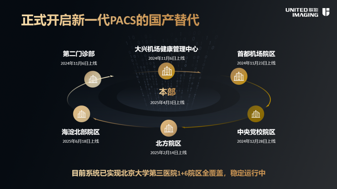 为确保系统平稳落地,双方制定了逐步推进的上线替代方案,于今年 6 月正式完成 AI PACS 在北医三院院本部及 6 个直属分院区的全域覆盖。