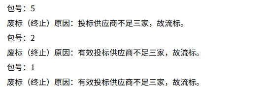 其余采购包结果各异:采购包3 由重庆君溢科技发展有限公司以 27.88 万元中标;采购包 1、2、5 则因 “有效投标供应商不足三家” 流标。