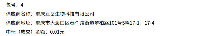 2025 年 9 月 15 日,中国政府采购网一则中标公告引发关注:重庆市某医院医疗设备采购项目中,采购包4 由重庆亘岳生物科技有限公司中标,成交金额仅 0.01 元(一分钱)。