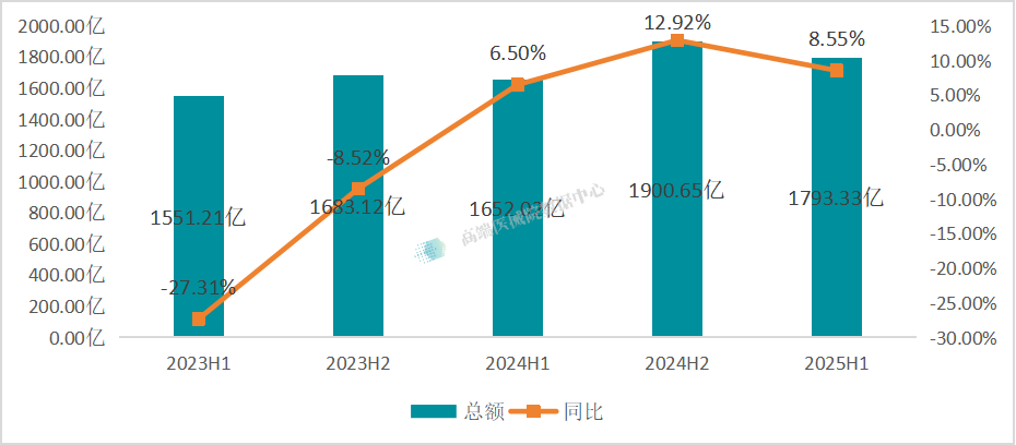 图表1:2023H1-2025H1海关数据中的出口总额及同比