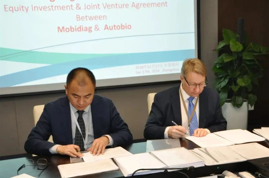 2018年12月15日,安图生物与Mobidiag Oy签署投资《合资合同》(JVC),共同出资在中国设立合资公司郑州安图莫比分子诊断技术有限公司,其中安图生物以货币出资800万欧元持股65%,Mobidiag以货币出资430万欧元持股35%。2019年5月17日Mobidiag与安图莫比签署《许可、开发和分销协议》(LDDA), Mobidiag授予安图莫比在约定区域内商业化初始产品的权利。