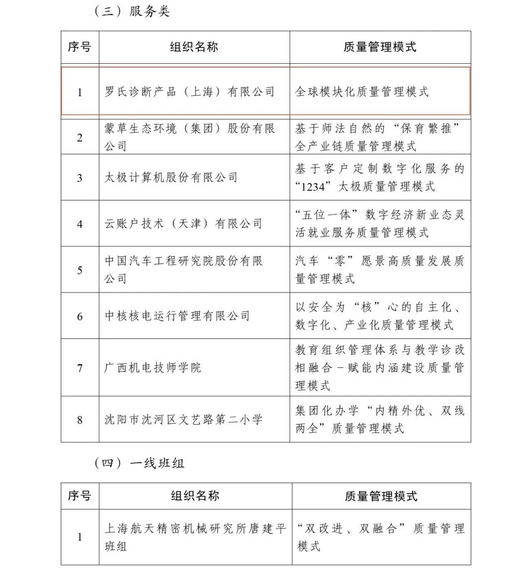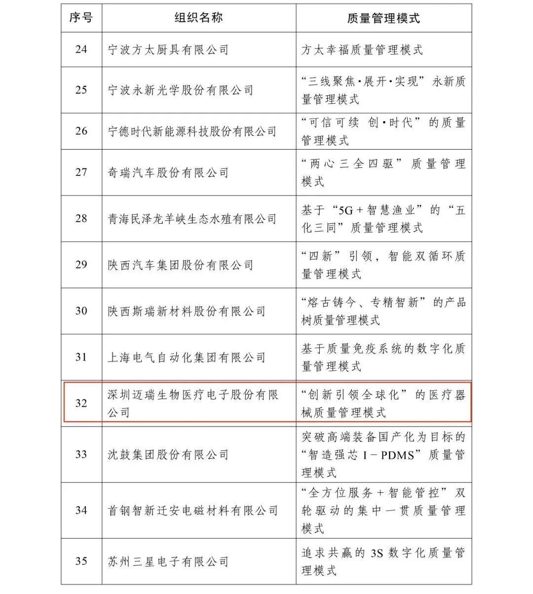 为表彰先进、选树典型,市场监管总局根据《中国质量奖管理办法》规定,会同有关部门成立中国质量奖评选表彰委员会,开展第五届中国质量奖评选表彰工作。经各地区各行业推荐、评选表彰委员会严格评审和市场监管总局审定,本次获得“第五届中国质量奖”的共有9家组织,获得“第五届中国质量奖提名奖”的共有78家组织和6名个人。其中迈瑞医疗和罗氏诊断均获得“第五届中国质量奖提名奖”。