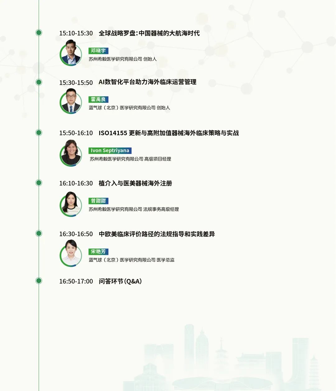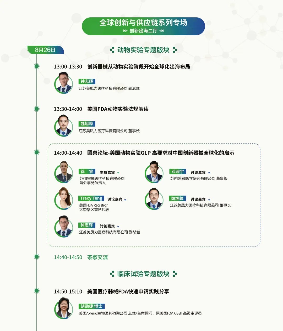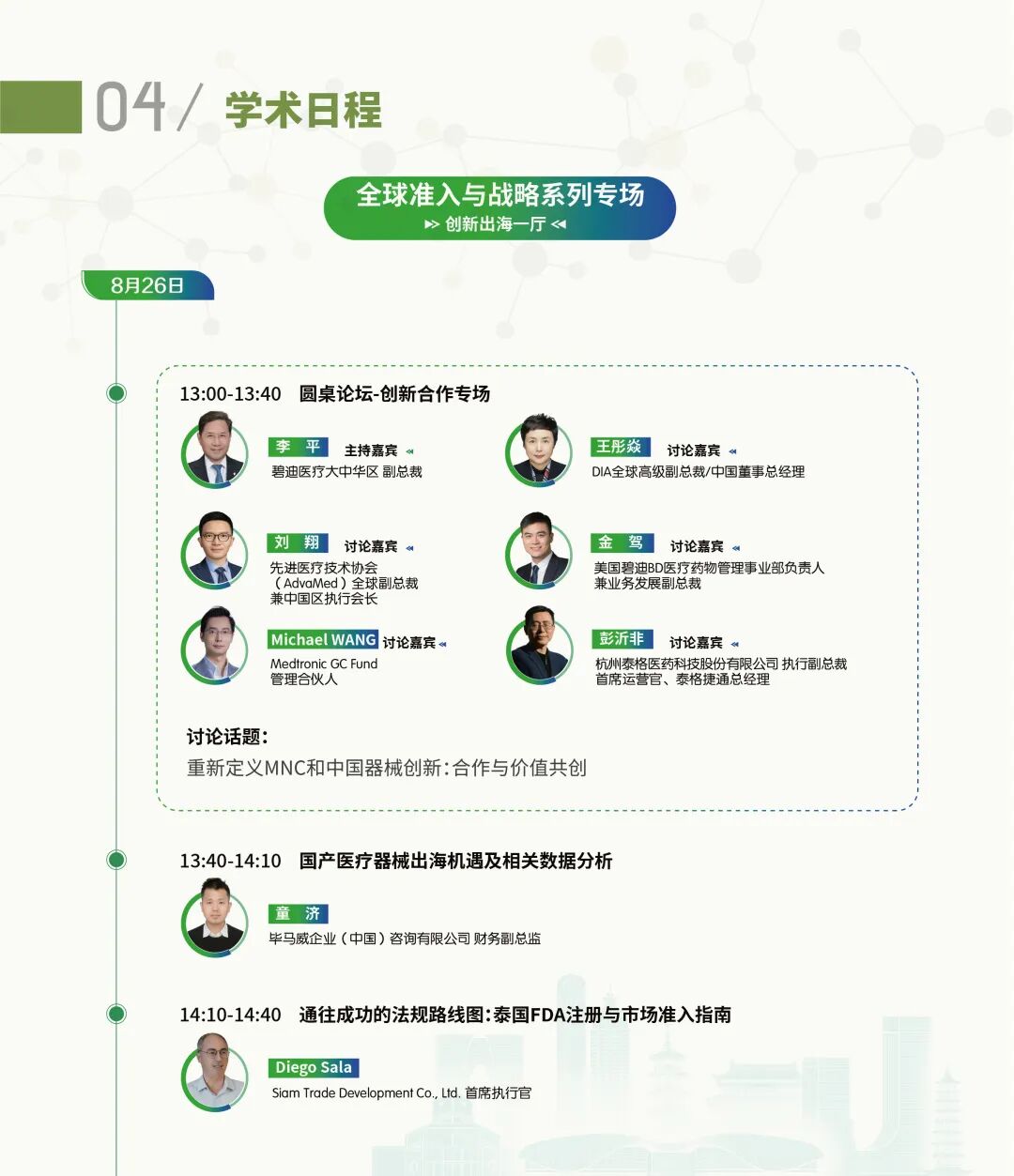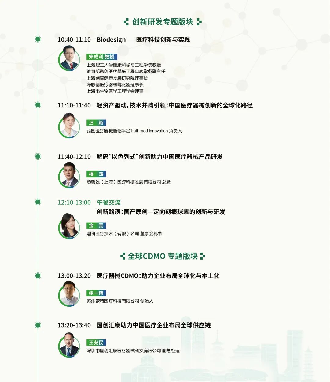 两天超高密度议程,六大专题专场,百余位行业专家,聚焦“国产医疗器械全球准入破局之道”,全景呈现从研发、注册、临床到出海、合规、转化的全链条解决方案!数千平米展区,百家国内外创新医疗器械企业、医院、科研机构、研发服务机构集体亮相苏州!