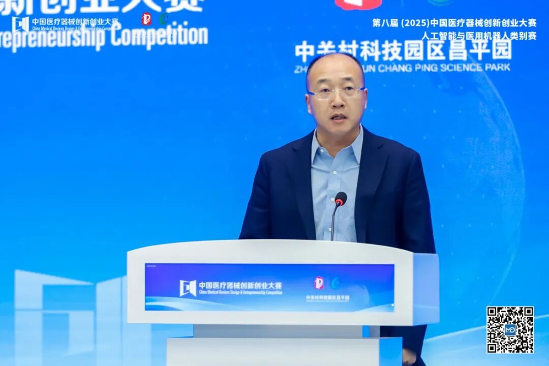 柳强主任介绍了昌平医药健康产业发展,透露了昌平区后续将打造 “临床 + 投资 + 孵化 + 园区” 四位一体的生态圈计划,以及近三年昌平区生物医药收入年均增 9.2%、产业收入破千亿元,并围绕 “132” 体系实施产业提升计划,聚焦高端器械,2024 年昌平区器械产值 144 亿元,占北京 40% 以上,成核心增长点。肯定大赛的行业地位以及往届赛后对昌平区医械项目落地的促进作用,后续昌平区将围绕医疗器械高质量发展的需求,以强生态、优服务、促转化为核心,夯实产业根基、激发创新动力。