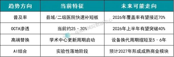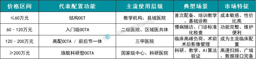 在不同价格带、临床层级与政策环境下,OCT市场正形成一种“高端替换与基层扩容并行”的分层结构: