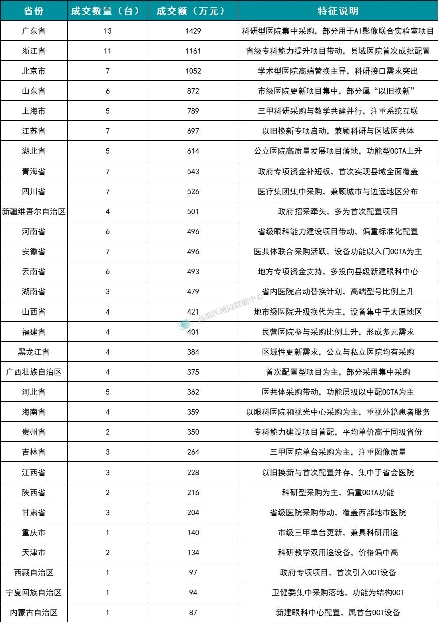 2025年第三季度,中国OCT采购在区域分布上呈现出鲜明的“双重格局”: