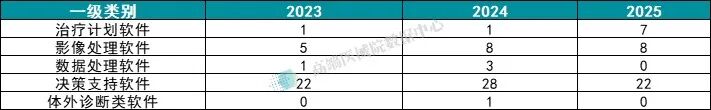 • 治疗计划软件增长最突出:从2023-2024 年的 1 件,跃升至 2025 年的 7 件,实现量级突破;