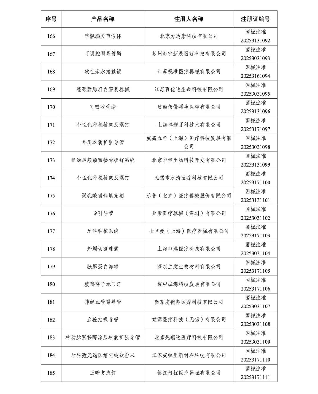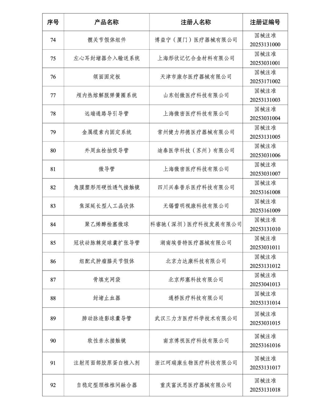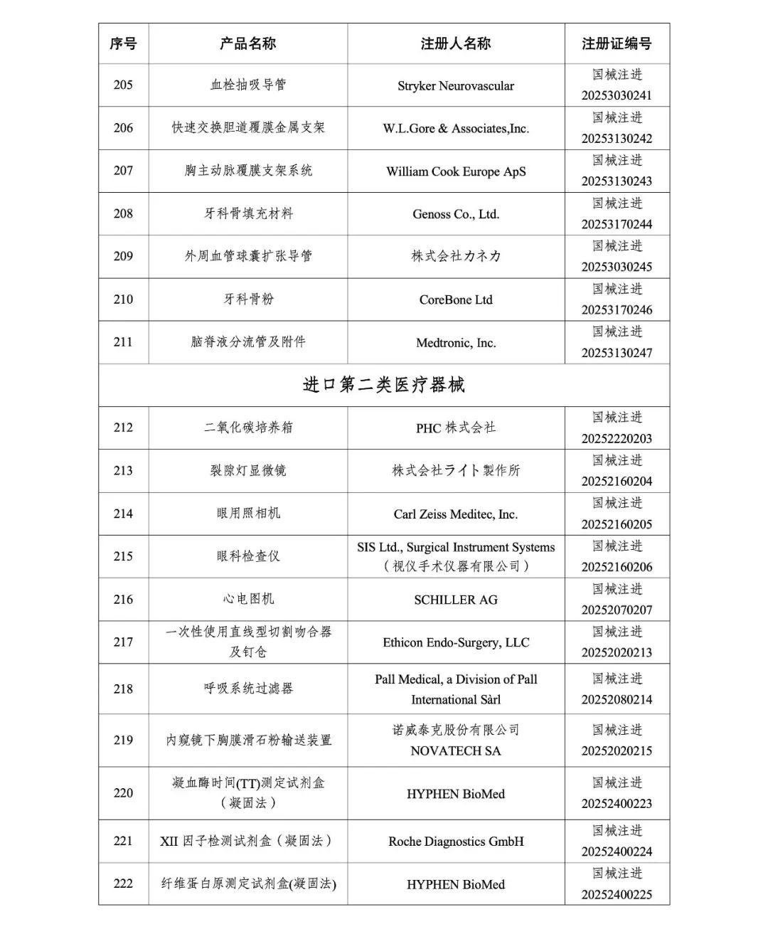 其中,境内第三类医疗器械产品189个,进口第三类医疗器械产品22个,进口第二类医疗器械产品23个,港澳台医疗器械产品2个。