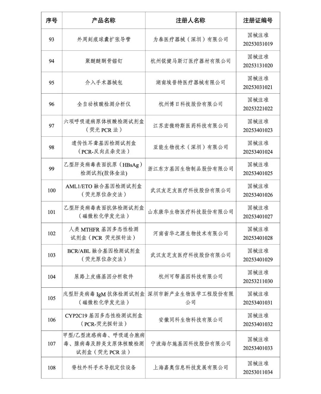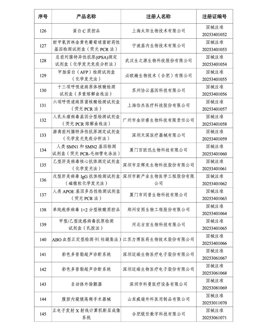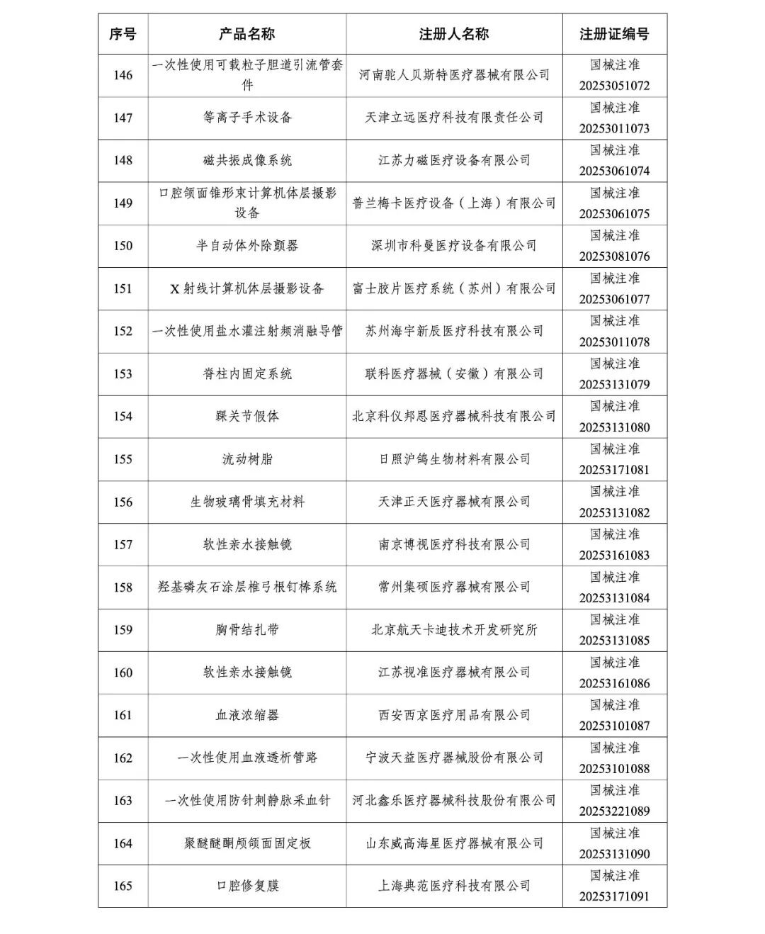 其中,境内第三类医疗器械产品189个,进口第三类医疗器械产品22个,进口第二类医疗器械产品23个,港澳台医疗器械产品2个。