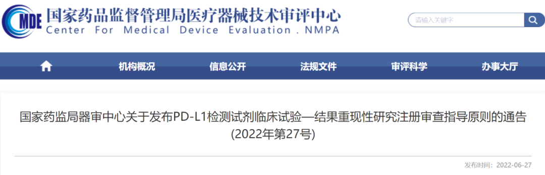 为进一步规范PD-L1检测试剂的管理,国家药监局器审中心组织制定了《PD-L1检测试剂临床试验—结果重现性研究注册审查指导原则》,现予发布。