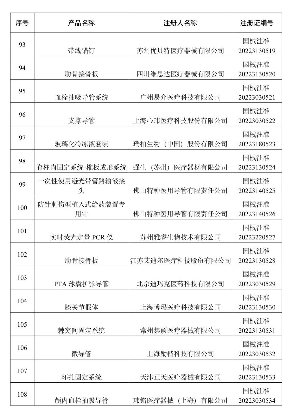 2022年3月批准注册医疗器械产品目录