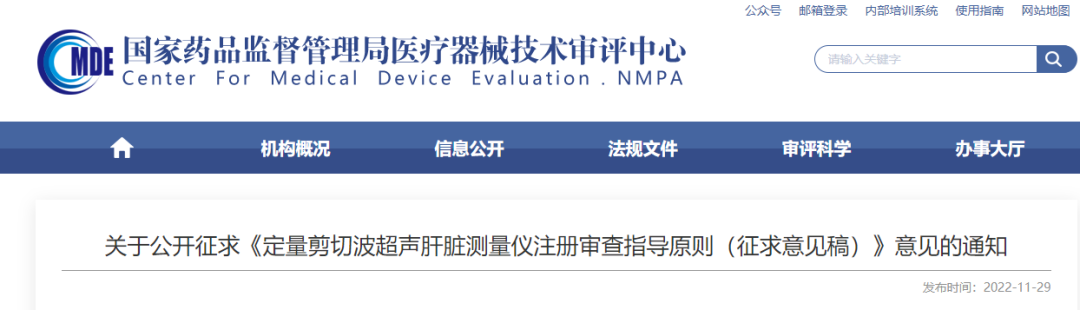 根据国家药品监督管理局2022年度医疗器械注册审查指导原则制修订计划的有关要求,我中心组织编制了《定量剪切波超声肝脏测量仪注册审查指导原则(征求意见稿)》(附件1),即日起在网上公开征求意见。