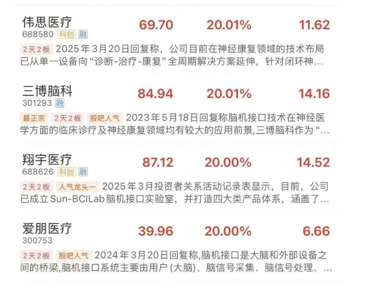 受此利好催化,A股脑机接口概念股集体爆发。创新医疗、爱朋医疗、翔宇医疗、亚辉龙、麦澜德等近十个标的连续两日封死涨停板,市值单日激增超百亿元。