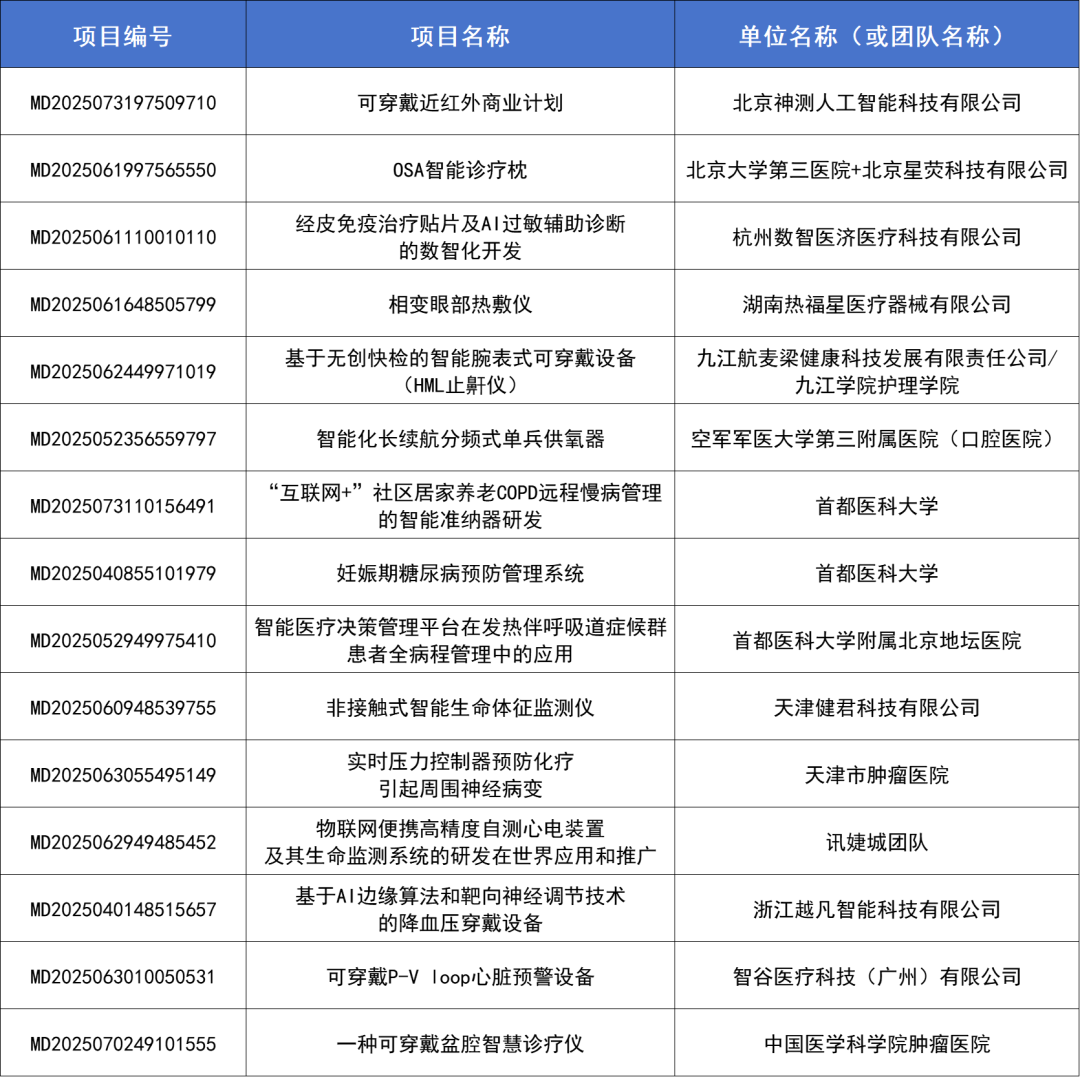 项目入围公示|第八届(2025)中国医疗器械创新创业大赛可穿戴与信息化产品类别赛