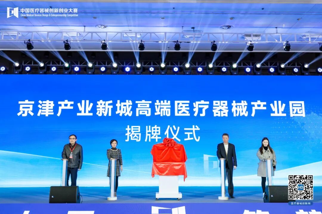 随后进入揭牌环节,天津市药监局医疗器械注册处处长梁林、天津市医药科学研究所副所长王蕾、天津医科大学校长办公室主任宋振强、招商蛇口天津公司天津网谷营销负责人妙丽丽,共同为“京津产业新城高端医疗器械产业园”揭牌。这一时刻标志着武清区在打造专业化、集群化医疗器械产业平台上迈出了实质性的一步。