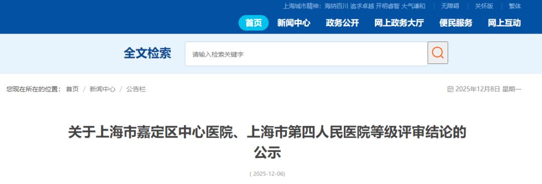 据上海市卫健委网站,两家医院的等级评审结论有了新进展。