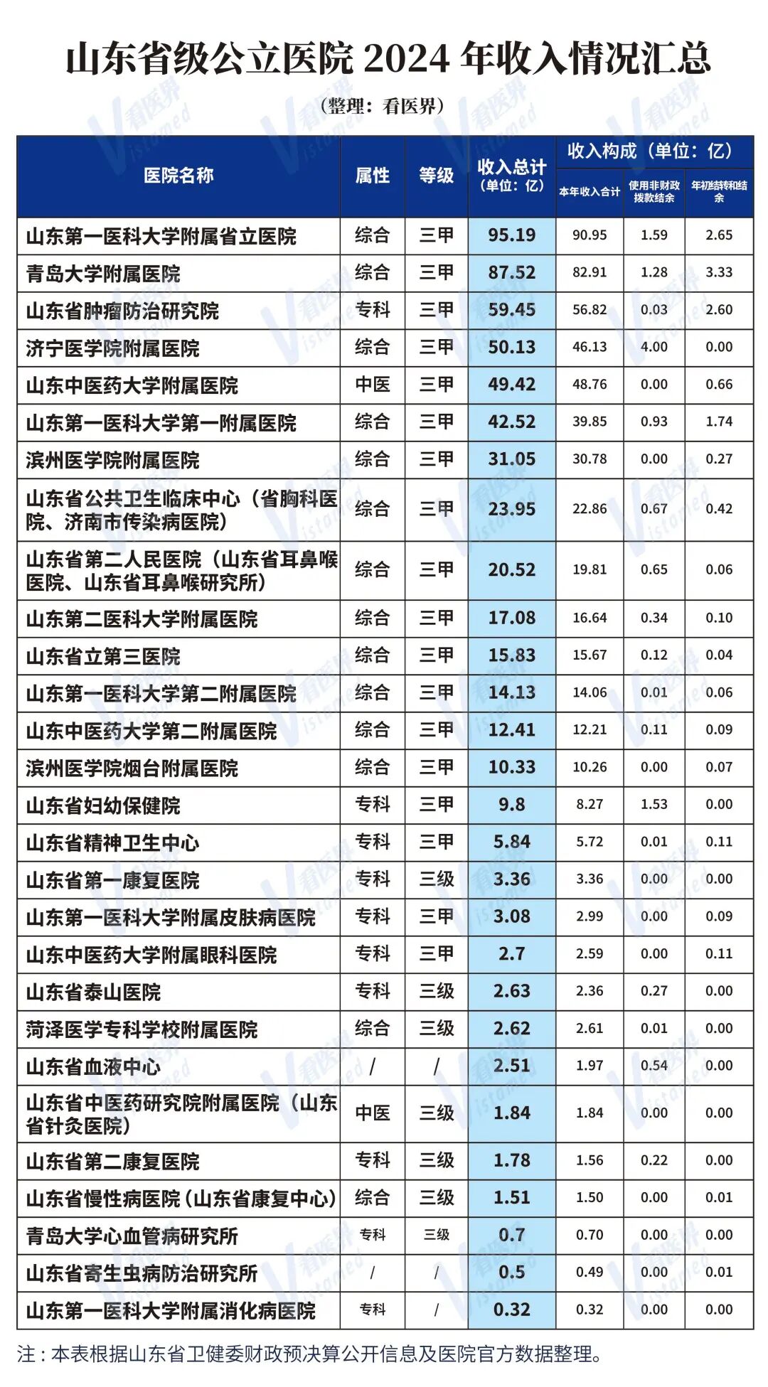 山东28家省级医院年收入情况公布!